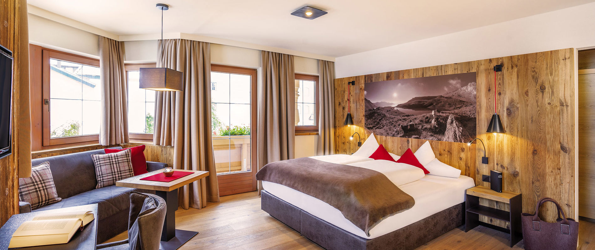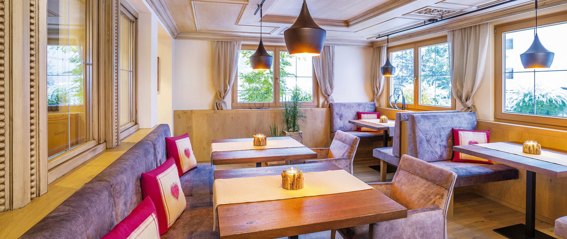 The newly refurbished rooms and apartments are in a country-house style, creating a feeling of wellbeing with wonderful mountain views. The Hotel's fantastic location offers peace and tranquillity.